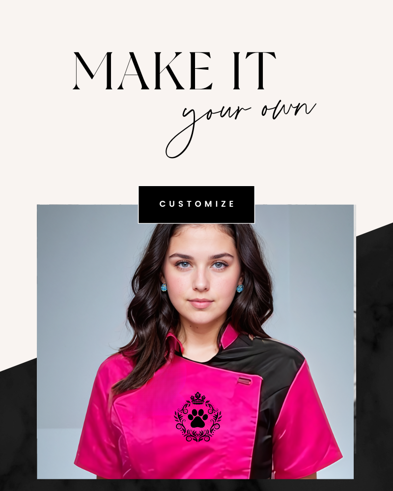 At Ooh La La Spa Wear, we offer custom design services to personalize your smocks with your own logo or artwork. Whether you're representing your brand or adding a personal touch, our custom designs are the perfect way to stand out while looking stylish and professional.